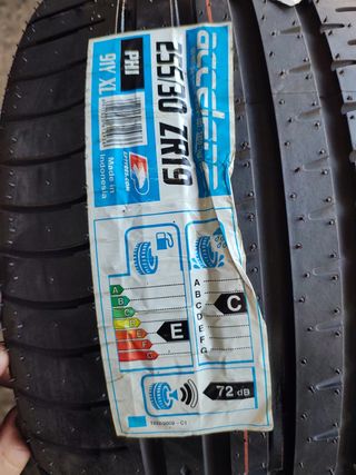 Neumático de la marca Accelera, modelo Phi, en medida 255/30 ZR19 91Y XL. Disponible 1 unidad - Fabricado en Indonesia. - Etiqueta de eficiencia energética: Consumo E, Mojado C, Ruido 72 dB.