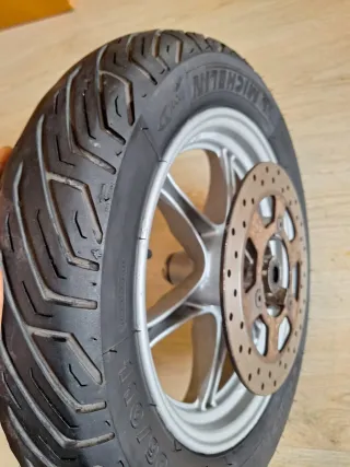 Rueda delantera Michelin City Grip para Suzuki Burgman 125/200. En buen estado, neumático y el disco de freno. Dejo a 20€ no negocio. No acepto devolución.