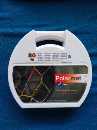 Cadenas de nieve Polarmet, talla 80, totalmente nuevas a estrenar yo las tenía para un Seat Ibiza. - Compatibles con las siguientes medidas de neumático: * 165x15, 195/60x15, 205/60x14, 215/50x15 * 185x13, 195/65x15, 205/65x14, 215/50x16 * 185/65x15, 195/70x14, 205/70x13, 225/50x15 * 185/70x15, 205/45x17, 215/40x17, 225/55x14 * 195/55x16, 205/50x16, 215/45x16......... - Grosor de 9 mm. - Incluye caja para guardarlas.