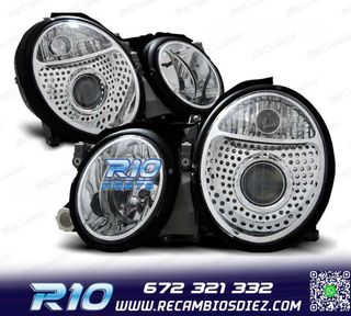FAROS MERCEDES CLASE E W210 99-02 FONDO CROMO