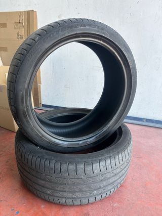 Se vede par de ruedas, neumáticos al 50/60% . Media 235/40/19 96Y 19 pulgadas r19 - Modelo S001. - Marca Bridgestone. - Línea Potenza.