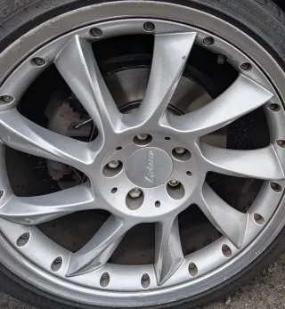 Juego de llantas Apex para BMW M. Medida delantera 19x9'5 con neumático yokohama advan v105 265x40x19 Medida trasera 19x11 con neumatico yokohama advan v105 295x40x19 Los neumaticos tienen 9000km y estan al 80% de vida util. Una de las llantas delanteras tiene un pequeño arañazo. Se venden sin válvula ni sensor de presion del neumatico.