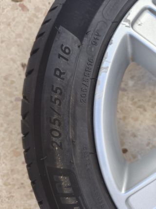 Juego de cuatro neumáticos Michelin. 205/55 R16 Vendo 4 llantas de aluminio R16 y cubiertas Michelin 205/55 R16 en perfecto estado, recorrido 400 km. Motivo de la venta: he gripado el motor y el coche esta en el desguace, tengo factura de las cubiertas y del desguace. Se venden las 4.