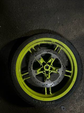 Llanta deportiva para Yamaha TZR, con un llamativo color verde lima. - Llanta de aleación. - Diseño de 5 radios. - Incluye disco de freno.