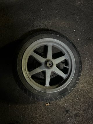 Neumático de moto scooter nuevo .. no ha circulado nunca.. me costó 90.. vendo en 65 incluido llanta y cámara nueva... - Medida: 130/60-13.
