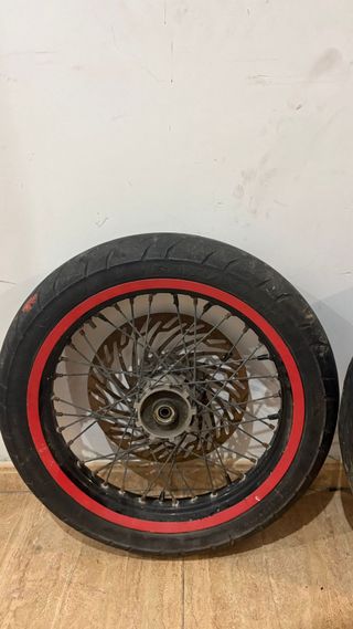 Llantas sm 17 de radios para derbi - Están tal cual en la foto solo que sin basculante -Los neumáticos están para cambiar -PRECIO NEGOCIABLE