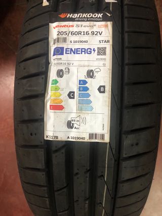 Neumático Hankook HRS Ventus S1 Evo2 con medidas 205/60 R16 92V. 1 unidad. Completamente nueva. Runflat. DOT 3824 - Etiqueta energética: Consumo C, Mojado B. - Ruido exterior: 65 dB.