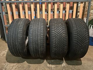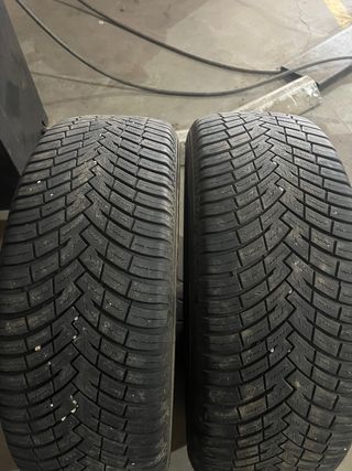 Juego de 4 neumáticos cuatro estaciones. 2 neumáticos IMPERIAL ALL SEASON 225/55ZR17 101W M+S prácticamente nuevos, al 95% de su vida útil. PVP: +75€/unidad nuevo. 2 neumáticos VREDESTEIN QUATRAC PRO 225/55R17 101Y M+S, en buen estado, uno de ellos reparado, al 65% de su vida útil. PVP: +130€/unidad nuevo. Posibilidad de vender por parejas. Llantas no incluidas. 120€ por las 4, es mi último precio, 30€ la unidad te queda. Si me vas a andar regateando esto es mejor que ni me escribas, píllate unas nuevas.
