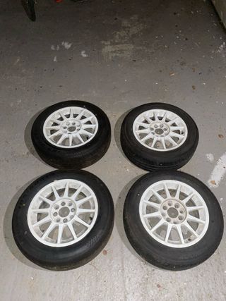 Juego de llantas para Citroën Saxo con neumáticos recién puestos. - Llantas de aleación blancas. - Neumáticos en perfecto estado.