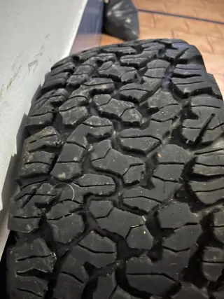 Neumáticos BF Goodrich en buen estado. - Diseño robusto para todo terreno. - Marca reconocida por su durabilidad. Cuatro neumáticos bf goodrich all terrain 265/65/18 en muy buen estado tal cual se ven en las fotos, uno de ellos un poco más desgastado por un flanco. Precio de los cuatro 240€.
