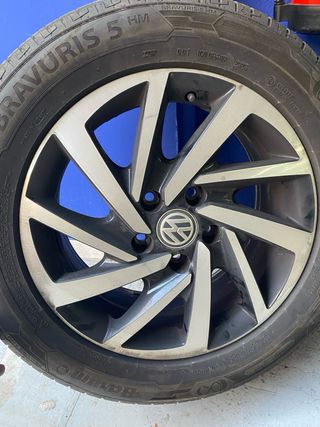 Juego de 4 llantas originales de 16" Volkswagen transporter t6 con 4 neumáticos de medidas 215/65 r16 al 50% del uso, solo tienen 2 años - Diseño deportivo de 5 radios dobles. - Acabado plateado brillante. - Incluye tapacubos centrales con logo.