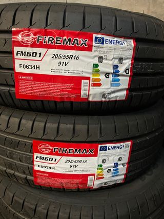 Juego de neumáticos Firemax FM601. - Medida: 205/55R16 - Índice de carga: 91V - Modelo: FM601 - Código: F0634H - Clasificación de eficiencia de combustible: C - Clasificación de agarre en mojado: B - Nivel de ruido: 69 dB - Clase de ruido: B