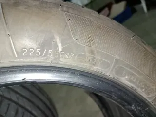 Juego de neumáticos con medida 225/55 R16.( dos de verano salun y dos de invierno hankook) al 80-90 % - Diseño de banda de rodadura optimizado para tracción. - Ranuras profundas para evacuación de agua y nieve. - Indicadores de desgaste integrados.