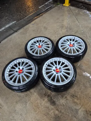 Llantas bbs RT250 originales en 2 piezas, 8Jx18" / 5x112 Son bastante raras de ver en españa, de hecho solo he visto un juego a la venta, he hecho foto de cada una, algo rozadillas y asi pero sin llantazos fuertes y a falta de lavarlas algo mas a fondo pero por lo demas bien neumaticos para cambiar. Hagan sus ofertas, me gustaria quitarlas antes de año nuevo