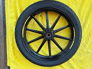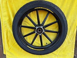 Llanta y neumático delantero para Ducati Scrambler. - Llanta original. - Incluye calcomanías Ducati. - Neumático Pirelli MT60 RS como muy poco uso todavía conserva los pelitos que trae de casa.