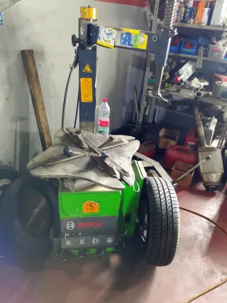 Se vende máquina montadora/desmontadora de neumáticos de la marca Bosch. Ideal para talleres. Va a 380v - Color verde y negro. - Incluye brazo de montaje. - Panel de control con botones.