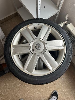 Juego de llantas de aleación para Renault. Diseño deportivo y elegante. - Llantas de aleación. - Diseño de 5 radios dobles. - Acabado plateado. Dos neumáticos con buen dibujo Hifly HF805 195/45 R16 84V, dos gastados. Llantas con marcas estéticas pero rectas. PRECIO NEGOCIABLE