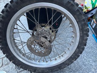 Rueda de moto rieju rrx/smx etc con llanta Akront y neumático Pirelli MT21. - Medida del neumático: 110/80-18 58P. - Medida de la llanta: 18-2.15-36-TC-1095. - Homologación E-DOT-SPALE. Las vendo porque cuando compre la moto me venian con ellas aparte y nunca las use estan bastante bien lo que son las ruedas estan un poco desgastadas pero la llantas estan bien
