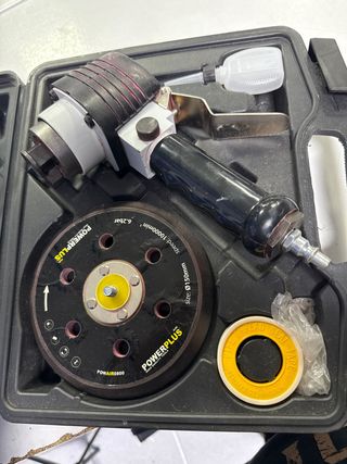 Pulidora neumática Powerplus en su maletín. - Incluye disco de 150mm. - Velocidad de 10000 rpm. - Presión de 6.2 bar. - Incluye cinta de teflón. - no tiene fugas , funciona correctamente Valencia capital