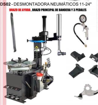 Desmontadora de neumáticos para llantas de 11 a 24 pulgadas. - Incluye brazo de ayuda. - Brazo principal tipo bandera. - Tres pedales. Envios a toda España WhatsApp 652737942