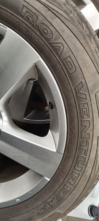 Juego de cuatro llantas de 17 pulgadas con neumáticos 225/60. Están usadas, pero en buen estado general. Presentan algo de suciedad por el uso. - Llantas de aleación ligera de color plata. - Neumáticos con dibujo visible. - Medidas: 225/60/R17