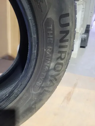 Neumático Uniroyal The Rain Tyre en medida 215/65 R15. - Diseñado para un excelente rendimiento en mojado. - Banda de rodadura optimizada para evacuar el agua. 2 Uniroyal y 2