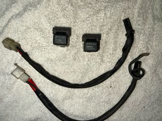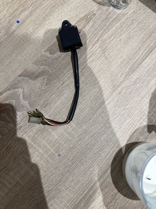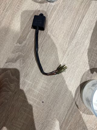 Componente electrónico para moto. - Caja negra con cableado. - Conectores metálicos en el extremo del cable.