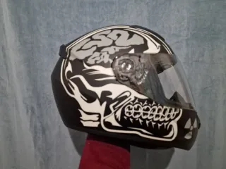 Casco integral para moto con un diseño llamativo de calavera y cerebro. - Talla S. - Cierre de seguridad. - Visera transparente.