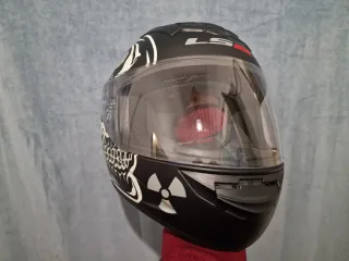 Casco de moto integral con diseño moderno. - Color azul y negro. - Visera transparente. - Marca LS2. -Va en su bolsa de transporte