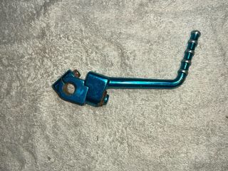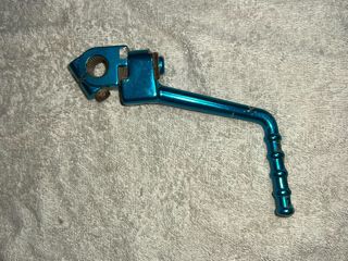 Pata de arranque para motocicleta en color azul metálico. Diseñada para facilitar el encendido del motor. - Fabricada en metal resistente. - Acabado brillante. - Diseño ergonómico para un buen agarre.