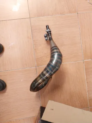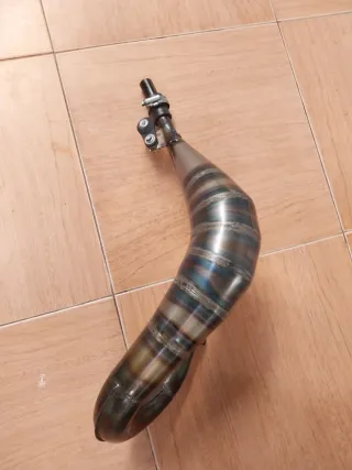 Panza de escape para moto Beta RR. Pieza metálica con acabado pulido y detalles de color azulado por el calor. - Diseño curvo. - Conexión para tubo de escape. Se a utilizado 4 meses Bien cuidado Algo negociable