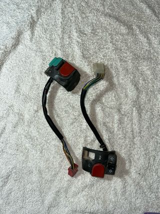 Conjunto de mandos de manillar para Yamaha Aerox. - Incluye interruptor de luces y bocina. - Incluye interruptor de arranque y luces intermitentes.