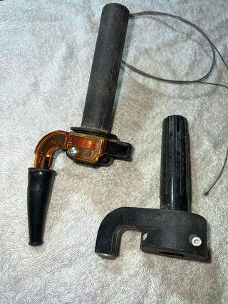Conjunto de puños de acelerador para motos El normal 5€ Y el de recorrido corto 12 Uno de recorrido corto y el otro es normal El normal tiene uso El de recorrido corto que tiene plástico transparente esta nuevo solo se probo