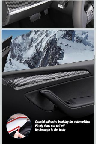 KKTR-CAR para Tesla Model 3 Model Y Dash Wrap Puerta Trim Cubierta Tablero Interior Carbono Patrón Decoración Wrap Kit Salpicadero Accesorios 4 Piezas (Fibra de carbono brillante-4 piezas) - Diseño imitación fibra de carbono. - Incluye piezas para salpicadero y puertas.