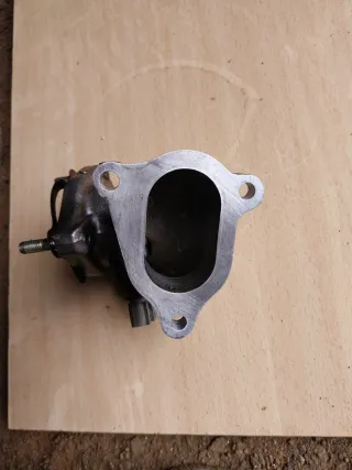 Codo de mariposa de admisión para Toyota Corolla. Pieza de metal con un acabado oscuro. - Conexiones para mangueras. Esta como nuevo