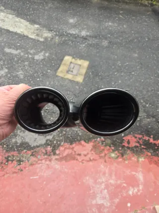 Dos colas de escape cromadas con un acabado brillante. - Diseño doble. - Material metálico pulido.