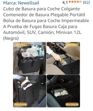 Práctico cubo de basura colgante para coche, marca Newellsail. Es plegable y portátil, ideal para mantener tu vehículo ordenado. - Material impermeable. - Diseño a prueba de fugas. - Capacidad de 12L. - Color negro.