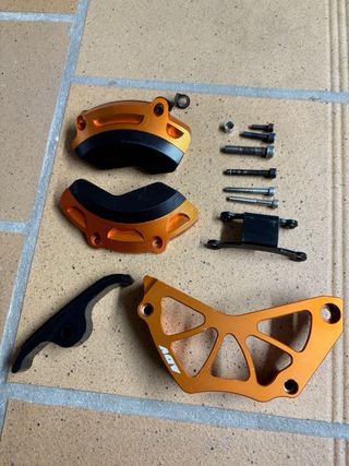 Set de protectores para motor de KTM 790 Adventure. - Fabricados en aluminio de alta calidad. - Color naranja. - Incluye tornillería necesaria para su montaje.