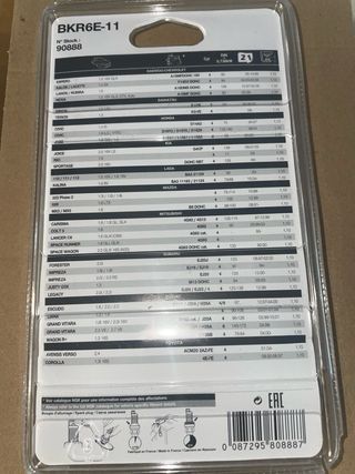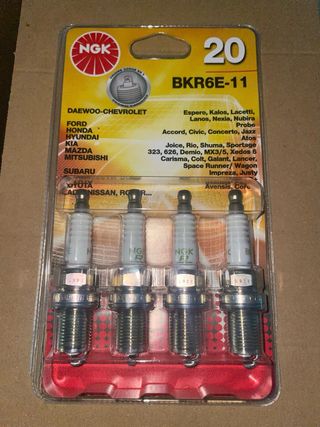 Pack de 4 bujías NGK BKR6E-11. - Modelo: BKR6E-11. - Marca: NGK. - Cantidad: 4 unidades.