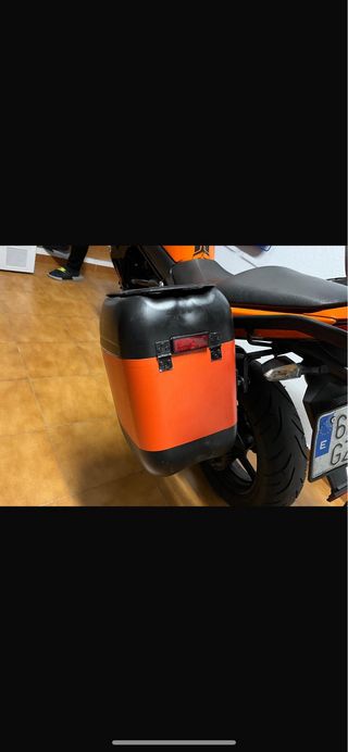 Maletas laterales para Kawasaki ER6N en color naranja. -Las maletas son artesanales junto con los herrajes - Diseño deportivo y funcional. - Acabado en naranja brillante con detalles negros. - Ideales para viajes y almacenamiento adicional