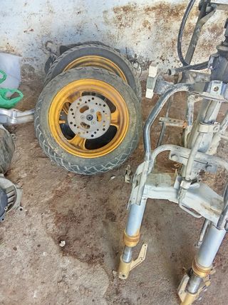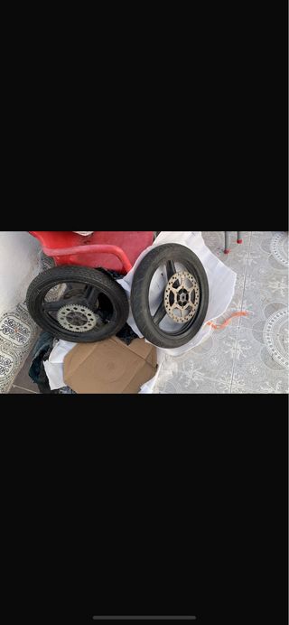 Juego de llantas para moto estilo supermotard. Listas para instalar. - Llantas delanteras y traseras. - Diseño deportivo en color negro. - Incluyen discos de freno.