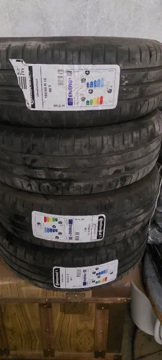 Juego de neumáticos Continental. - Medida: 185/65 R15 - Índice de carga: 88 - Índice de velocidad: T - Modelo: UltraContact Se venden los 4 neumáticos. En muy buen estados. 80% vida