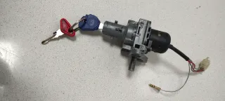 Bombín de contacto - bloqueo y apertura sillón maletero, para Derbi Atlantis. Incluye dos llaves. - Bombín de contacto. - Bloqueo de dirección. - Dos llaves (una roja y una azul).