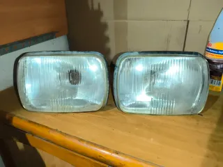 Pareja de faros delanteros para Seat 127. Piezas de recambio para tu vehículo clásico. Falta limpiar el interior - Incluye dos unidades. - Diseño rectangular con rejilla interior.