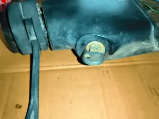 Mueble de calefacción para Seat 127. Pieza de recambio para el sistema de climatización del vehículo. - Carcasa de plástico negro. - Ventilador integrado. - Conexiones eléctricas visibles.