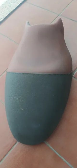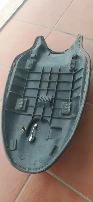 Asiento para moto Cagiva Planet 125. Diseñado en dos tonos, marrón y negro, para un estilo distintivo. - Parte superior en color marrón. - Parte inferior en color negro con textura. - Forma ergonómica.