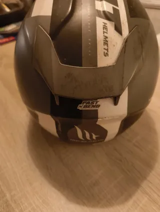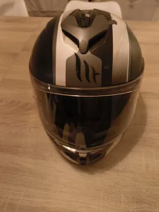 Casco de moto integral con diseño deportivo y visor. Talla S - Color negro, blanco y gris. - Visor transparente. Solo venta en persona