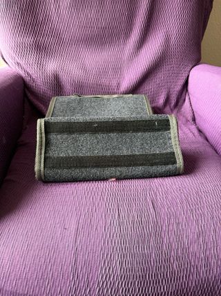 Práctica bolsa de herramientas para el coche, fabricada en fieltro gris resistente. - Material: fieltro gris. - Ribete de tela gris.