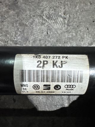 Palier para vehículos del grupo VAG. - Referencia: 1K0 407 272 PK - Fabricado por: VW, Seat, Skoda, Audi - Fecha de fabricación: 06.07.2009