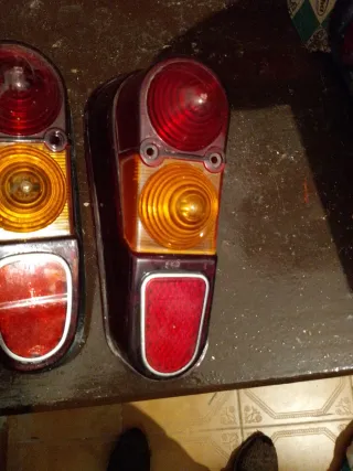 Juego de pilotos traseros para Renault 4. Piezas de recambio para tu vehículo. - Incluye dos unidades. - Diseño ovalado con lente naranja y roja.
